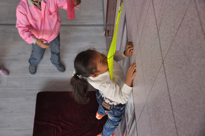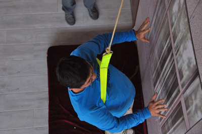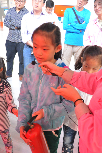 走进培训中心,丰富的体验点让学生们欢呼雀跃,3D技术短片《灾难警示录》播放过程中,地震来临,成群老鼠乱窜,观看的孩子情不自禁抬起双脚远离地面;消防标志识别系统、火灾隐患识别查找系统等寓学于乐小游戏,孩子们在爸爸妈妈的帮助下边学边玩,边相互比赛,不亦乐乎;灭火器激发孩子动手欲望,孩子们眼睛紧紧盯着灭火器,不等解说员讲解完就迫不及待的体验;在高层楼宇缓降器体验区,刘宸铄在爸爸的鼓励下体验高层缓降,成功着地后,刘宸铄欢呼的拽着爸爸一起高层缓降,体验完高层缓降之后,刘宸铄爸爸告诉讲解员:“刚开始心里有点担心,现在孩子和我都体验完之后,感觉很安全,孩子不但学会了高层缓降,发生火灾时能保护自己,而且锻炼了孩子的勇气”;119火灾报警系统区域,张笑芊一秒钟也等不及的想要体验,索性和旁边同学共用一个电话体验,两人异口同声的回答,引来家长阵阵笑声。