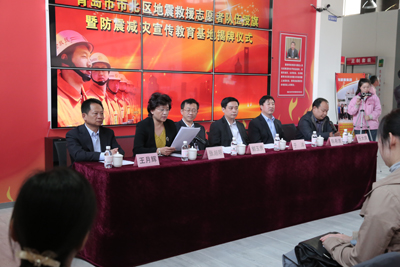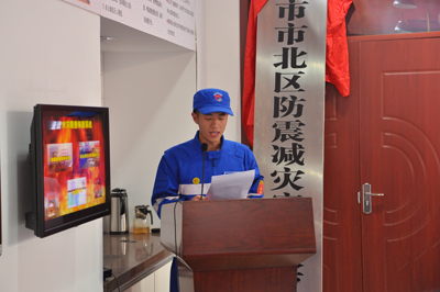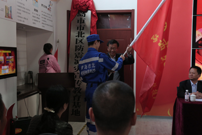 市北区地震局局长任大庆向所有出席仪式的嘉宾就关于市北区防震减灾宣传教育基地、地震志愿者救援情况发表讲话,高度赞扬了海丽雅集团统筹全局,在集团刚刚组建微盈利的情况下筹资400万建立全市首家应急安全教育培训中心,始终将提高全民防震减灾意识放在第一位。仪式上,青岛市地震局副局长郭玉贵、市北区区委常委副区长于洋共同为“市北区防震减灾宣传教育基地”揭牌,于洋副区长分别为市北区地震志愿者救援队和海丽地震志愿者救援队授旗,在接受海丽地震志愿者救援队队旗之后,志愿者代表孙帅上台发言“表示全体地震救援志愿者将坚决发扬一方有难八方支援的精神,决不辜负各界的期望”。仪式后,所有参加仪式的嘉宾在讲解员的引导下共同观摩体验市北区防震减灾宣传教育基地。