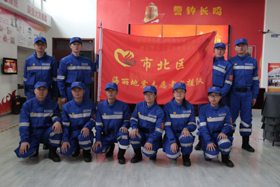 市北区区委常委副区长于洋为海丽地震志愿者救援队授旗