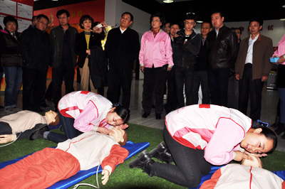 在培训中心,杨主席及众委员逐一参观了各体验点,在医疗自救培训区亲身体验心肺复苏项目,对寓学于乐、灾难场景再现、“体验+培训”的模式给予赞扬,指出让更多的群众走进培训中心,以培训中心为平台,将应急自救知识和技能以星星之火燎原到社会各个角落,切实为生命和健康增添一份“保单” 。