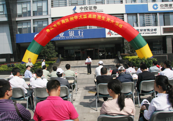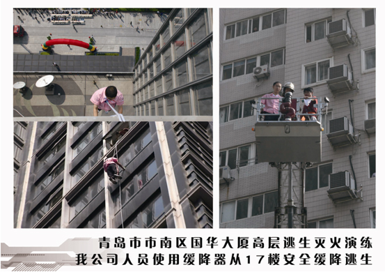 楼上浓烟滚滚,消防车呼啸而至,人群用湿毛巾捂口鼻往外跑……9月21日上午,市南公安消防大队联合市南安监局,在闽江路国华大厦进行高层建筑火灾救援演习。此次活动,亿和海丽有限公司的演示人员使用高层楼宇逃生缓降器自17层滑降至5楼平台,被消防战士救走。据介绍,高层建筑发生火灾,逃生缓降器是目前较为有效的逃离救生工具。