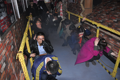 随后地面摇晃,房梁柱子发出断裂声。所有人相惊失色,试图跑出屋外。却发现头晕目眩,站立不稳,扑坐在地上,随着地面的颠簸而翻滚,房屋瞬间倒塌。墙倒屋塌之声和小儿恐惧啼哭、女人哀号之声交织一起,像开了锅的沸水一样喧闹。是发生地震了吗?原来是女企业家和企业安全生产负责人正在进行“3-6级”地震体验。