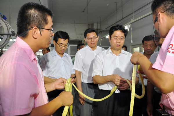青岛市常务副市长牛俊宪陪同国家工信部领导莅临海丽工业园考察特种绳缆研发生产情况