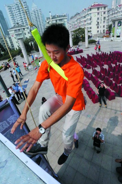 昨天上午,不少市民在专业人员指导下学习楼宇救生缓降器等先进家庭消防安全器材。
