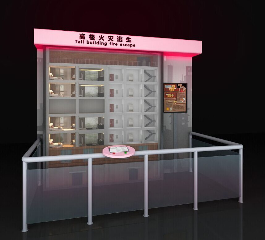 高楼火灾逃生装置展示目的:通过等比缩放模型与多媒体结合演示火灾发生时高楼发生火灾后会出现的问题,以及学习正确逃生方式和注意事项。 高楼火灾逃生装置展示方式:本展项通过计算机控制,等比缩放模型与2×3电视屏幕画面叠加结合演示火灾发生时高楼发生火灾后会出现的问题,以及学习正确逃生方式和注意事项。