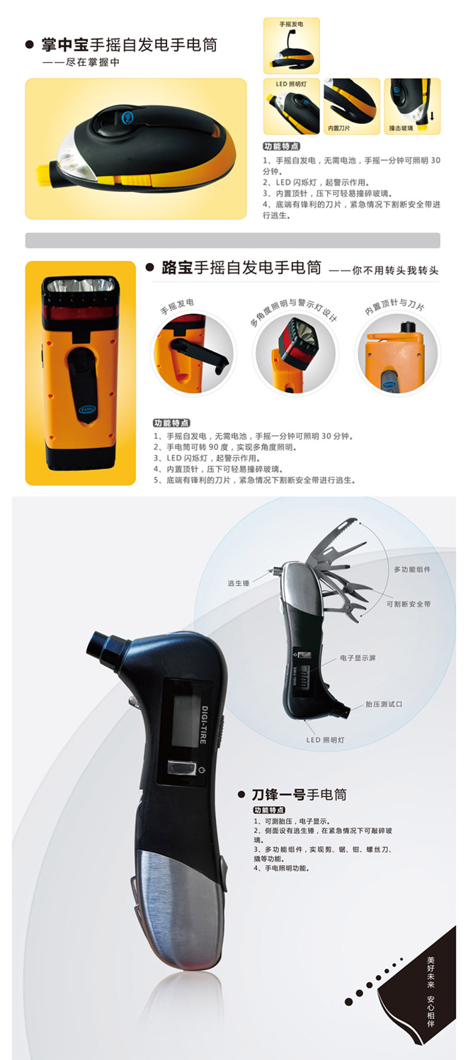 产品名称:手摇式自发电手电筒(车载系列)