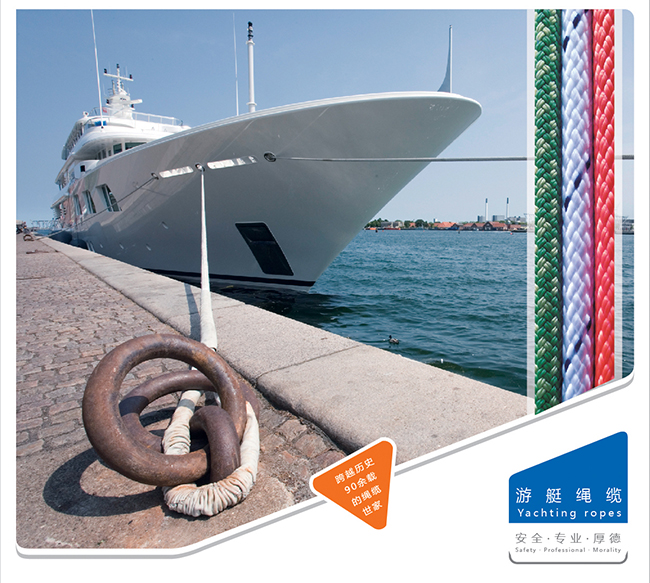 专用游艇绳特点:强力——轻便——柔韧——耐腐蚀——耐日晒——耐磨损