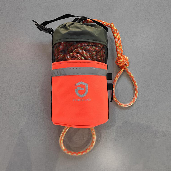 水上救援绳包主体采用高强度布料,颜色鲜艳且对比明显,并且采用多网孔布料设计,能够快速排水及减少干燥时间;