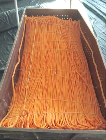 从2011年至今,青岛华凯海洋科技有限公司(青岛海丽雅集团)承担着为我国自主研制的“蛟龙号”载人潜水器配套研发特种绳缆,其中最具代表性的是9000米应急浮标缆,这条绳子是“蛟龙号”最后的一条“保命绳”,具有超高强度(直径4mm,破断力大于2.5吨)、轻质(密度为0.97g/cm3,可漂浮于水)、低延伸率、耐腐蚀等优点。