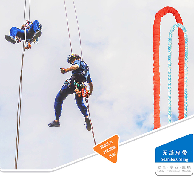 无缝管状扁带通过不同颜色区分产品长度,无缝连接技术优化产品外观及性能,消除强力损耗点,提高强力及稳定性能,为使用者安全提供更好的保护作用,性能指标符合EN566、EN354及EN795 typeB装置挂点标准。