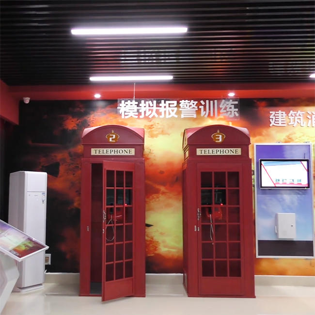 系统由立式定制触摸一体机组成,搭载模拟训练报警软件与改装电话机。运行流畅并可有效节约展项空间,符合人们日常应用现代电子通讯设备的习惯,且信息明确,操作简便。